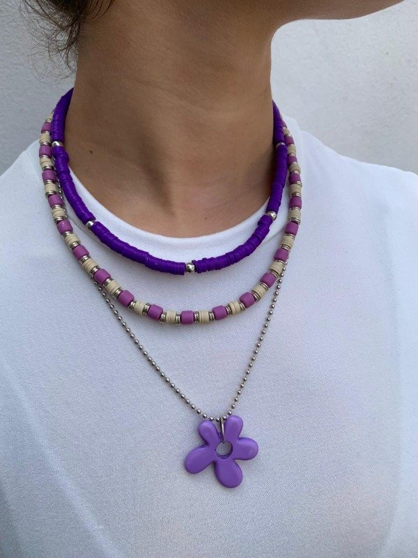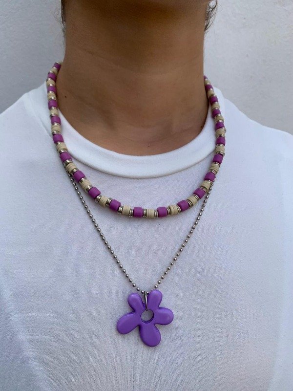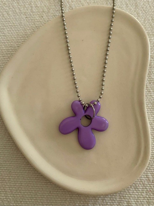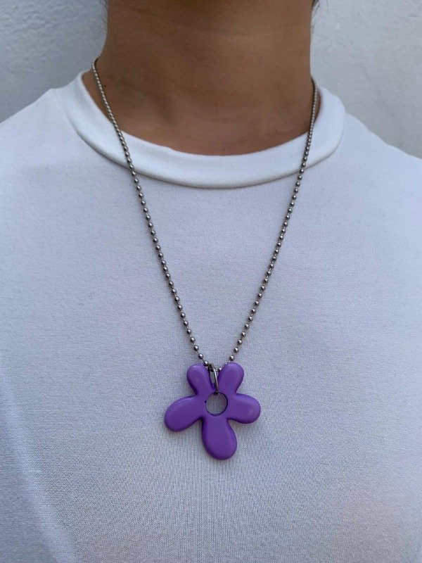 Collar de cadena de bolitas y dije de resina, de 55 cm de largo no regulable
