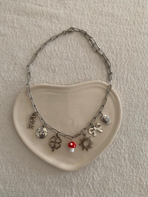 Collar hecho a mano con cadena y mix de dijes, regulable y extensible hasta 50 cm de largo