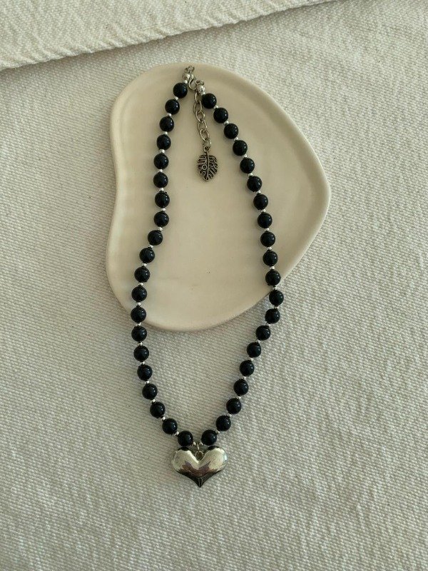 Collar hecho a mano con perlas plásticas y dije de corazón de 40 cm + 3 cm de extensión