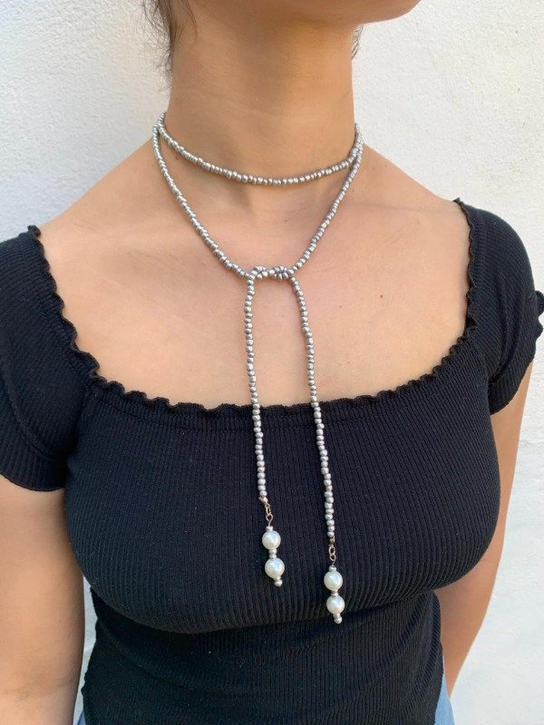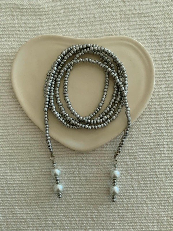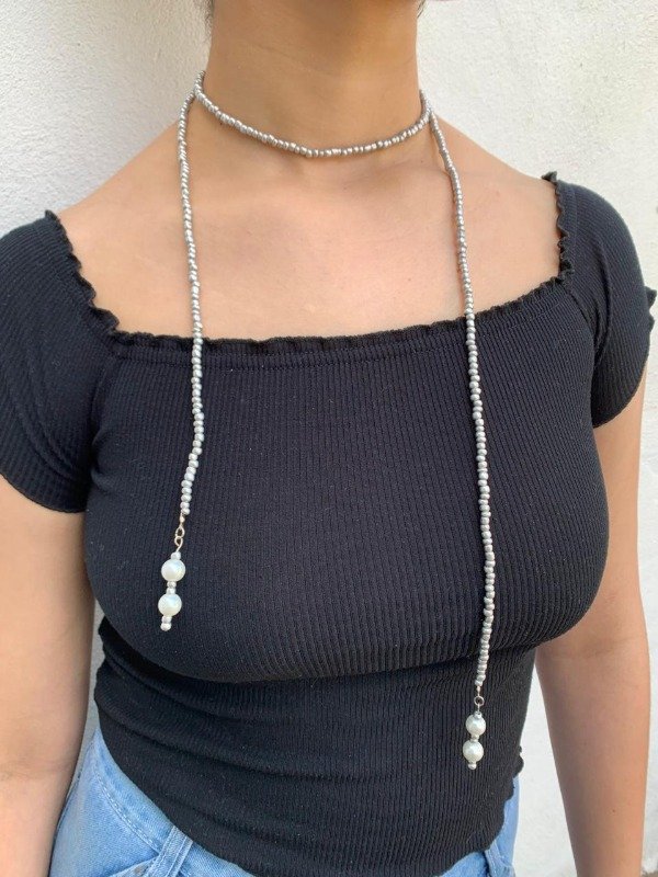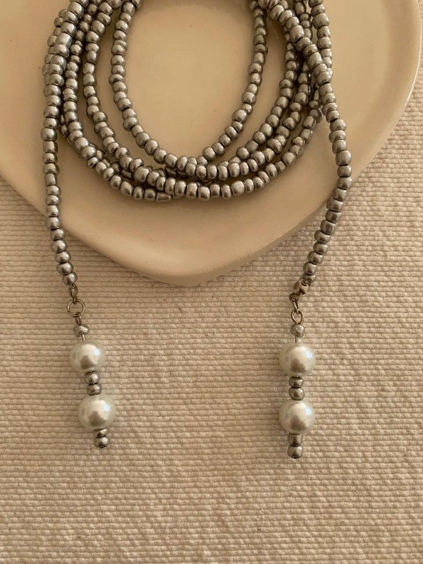Collar hecho a mano con mostacillas de 1,2 mts y terminales de perlas para usar simple, doble o triple