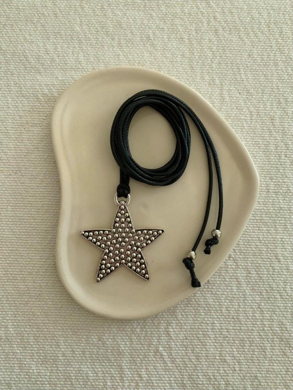 Tiento de ecocuero negro de 1,5 mts de largo y dije estrella