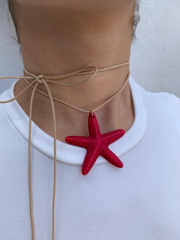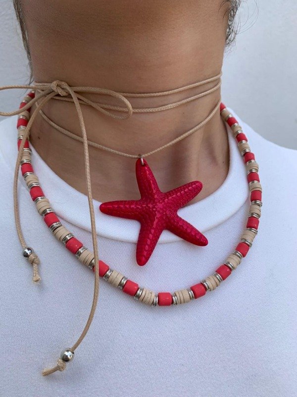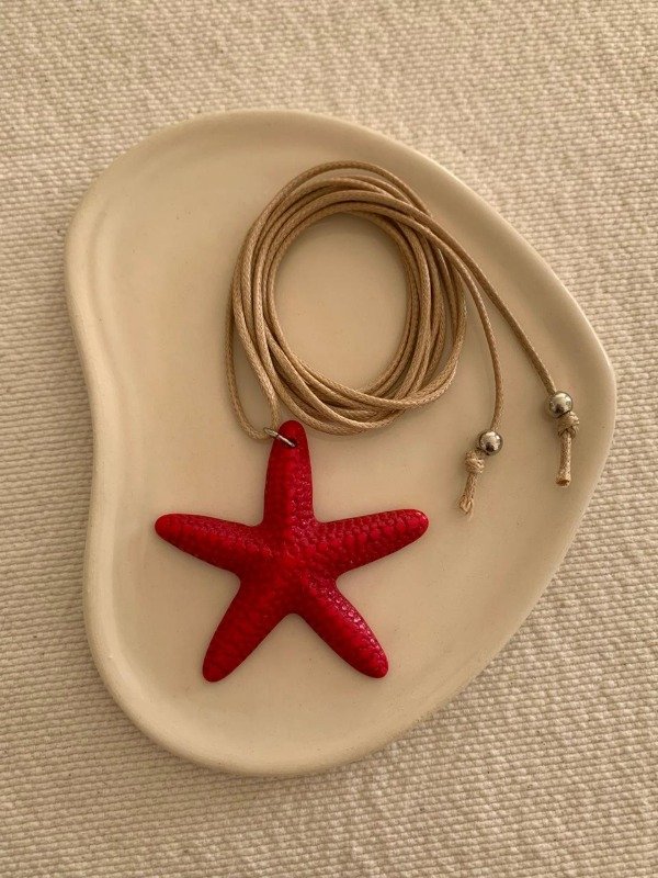 Tiento de ecocuero de 1,5 cm color camel y dije de estrella de resina